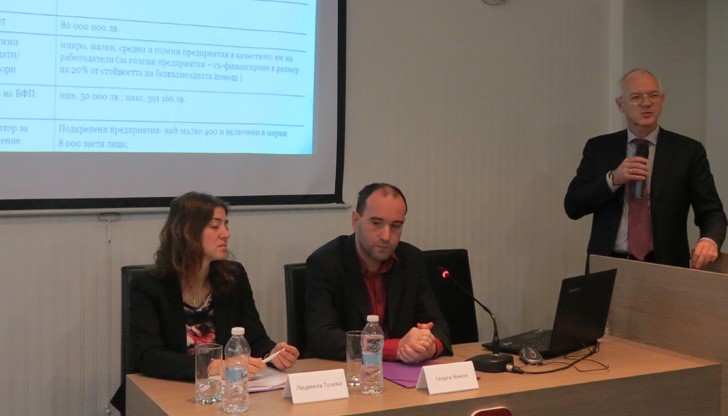 Г-н Георги Янков, главен експерт Главна дирекция „Европейски фондове, международни програми и проекти“ на Министерство на труда и социалната политика представи възможностите за финансиране на бизнеса по оперативна програма „Развитие на човешките ресурси“ 2014-2020.