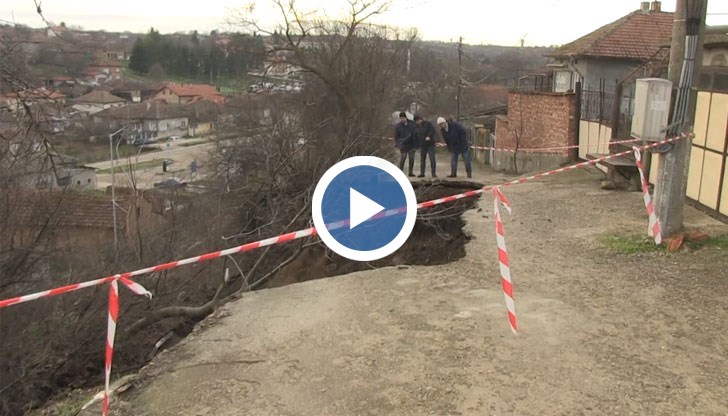 Земната маса се е срутила вчера следобед и е затрупала долния път. Жителите на няколко къщи са останали блокирани в домовете си, тъй като пропастта е на метър от портите им.
