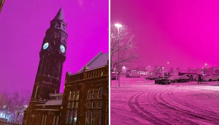 Жителите на Бирмингам и целия регион Уест Мидландс бяха изненадани от необичаен феномен в нощта на четвъртък срещу петък. Ослепително розова светлина озари небето, пораждайки вълна от спекулации в социалните мрежи за поява на полярно сияние (Aurora Borealis) или аномален залез.