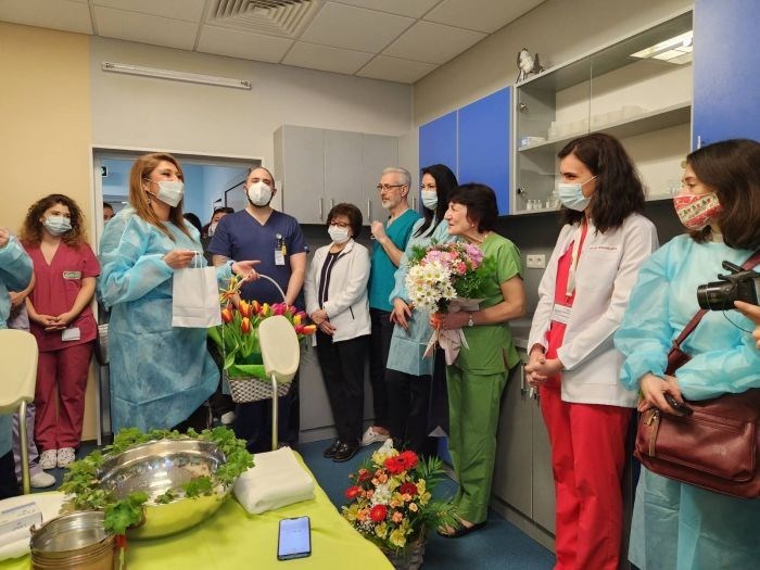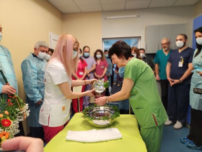 С ритуал по измиване на ръце университетската болница „Медика Русе“ отбеляза Бабинден, предава БНР. Старшата акушерка Евгения Йорданова поля вода на лекаря с най-дълъг стаж и началник на Отделението "Акушерство и гинекология" - д-р Стела Минчева.