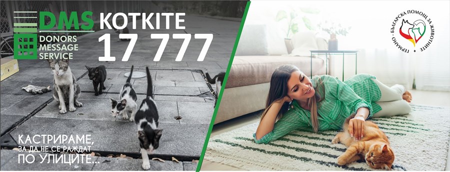 Вече можете бързо и лесно да подкрепите с 2 лв. общата ни кауза. Изпратете SMS с текст DMS KOTKITE на кратък номер 17 777.
