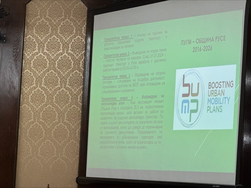 В Община Русе се проведе първото информационно събитие по мащабен проект за устойчива градска мобилност. Инициативата цели да намали трафика и вредните емисии чрез изграждане на велосипедна мрежа и въвеждане на интелигентни светофарни уредби. Проектът е финансиран по програма Life-Transport и се реализира в партньорство със Столична община, Бургас, Стара Загора, Велико Търново и Монтана.