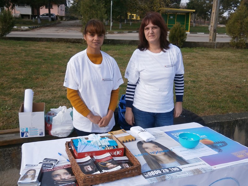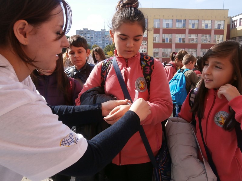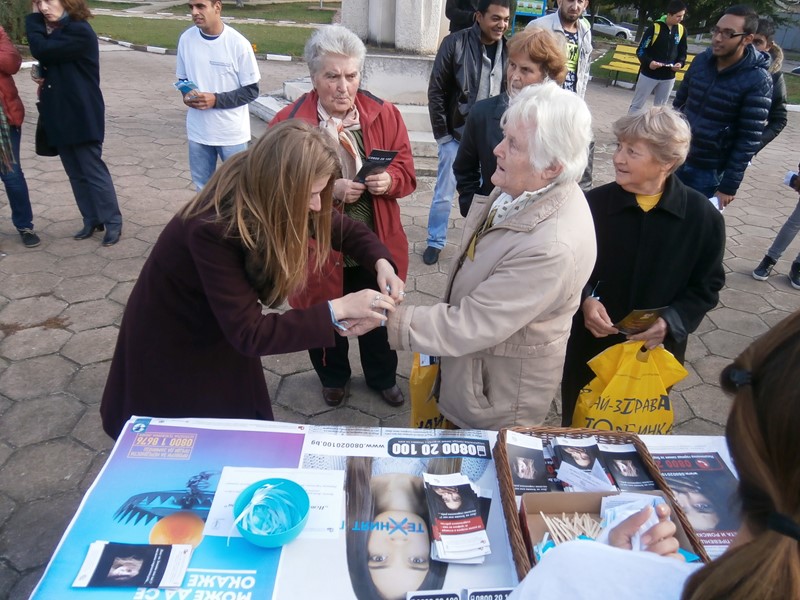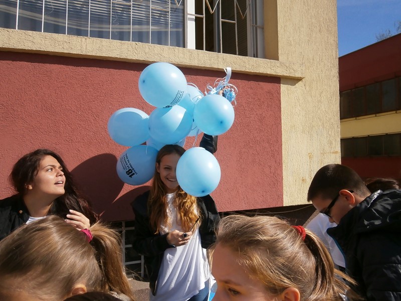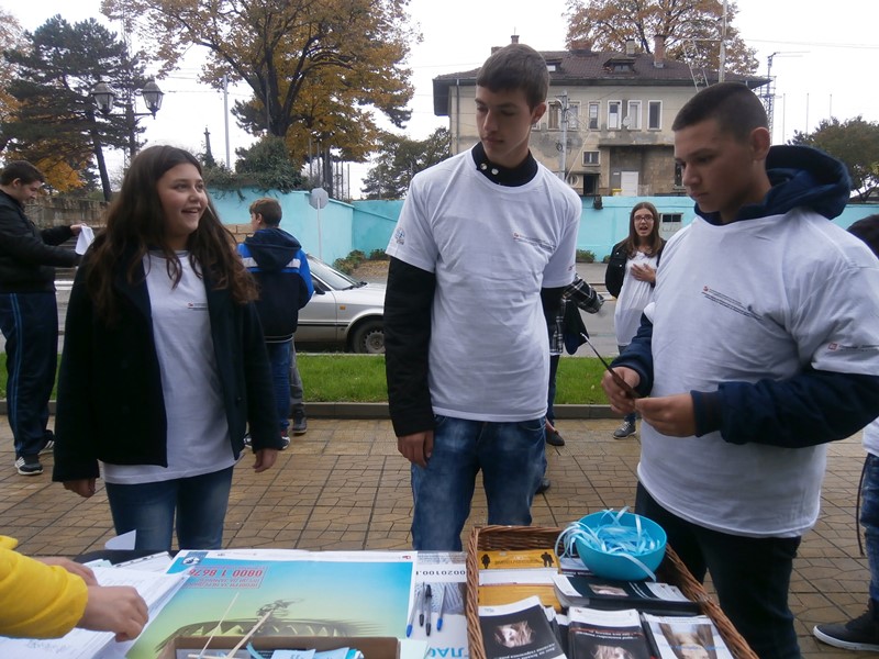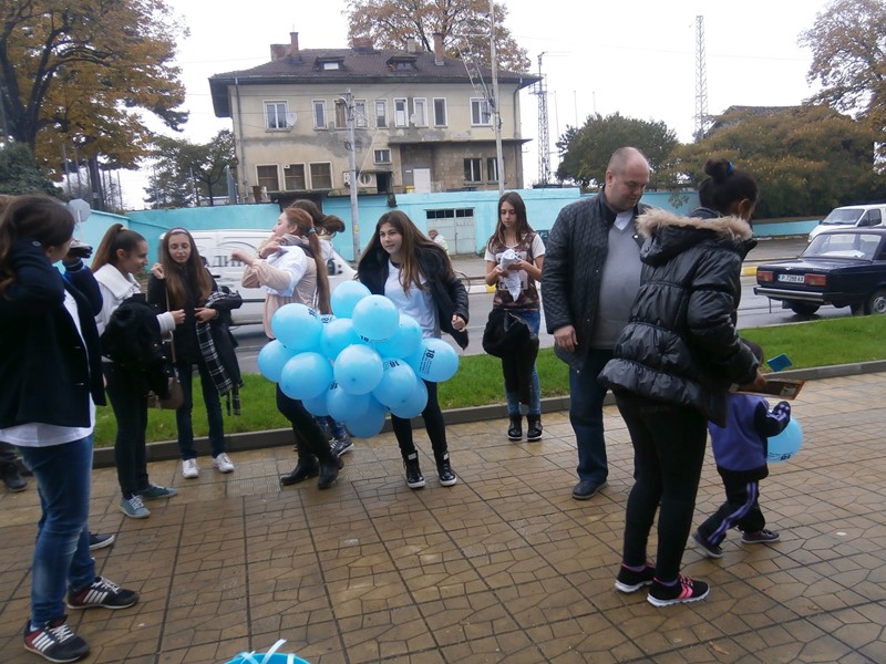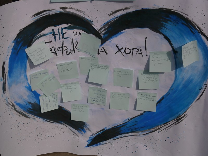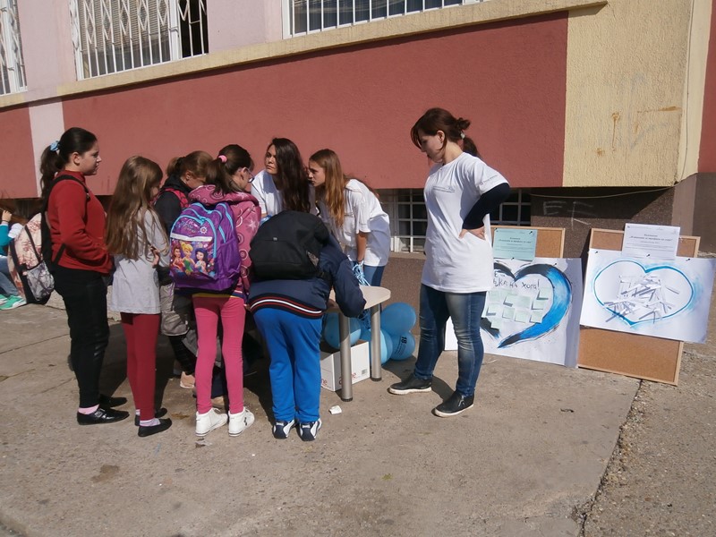 По време на публичните събития разпространихме брошури и плакати, ръчно направени от доброволците ни картички и сърца с послания по случай 18 октомври и сини балони. На специално направени картони със сини сърца децата и гражданите оставиха послания, изразяващи позицията им против трафика на хора.