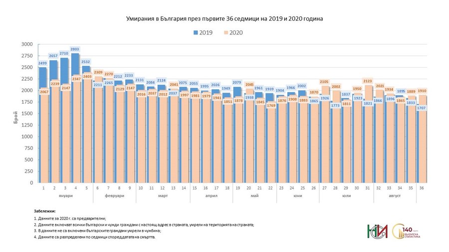 Статистика за смъртността у нас през 2019-та и 2020-та