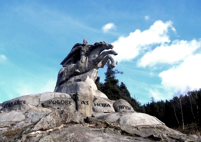 Всъщност тези думи са изписани на паметника на Бенковски в родния му град Копривщица. Той изобразява понесен във вихрен бяг конник. Фигурата е висока 7.80 м, конникът е стъпил върху 5 гранитни морени, символизиращи петте века турско робство. Върху тях са издълбани словата: "Ставайте робове, аз неща ярем”.
