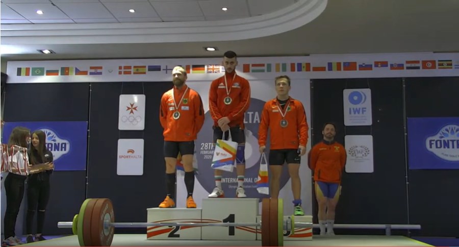 Русенският щангист Стилян Гроздев се класира на първо място в двубоя в категория до 61 килограма на Международния турнир по вдигане на тежести, което се провежда в Малта.