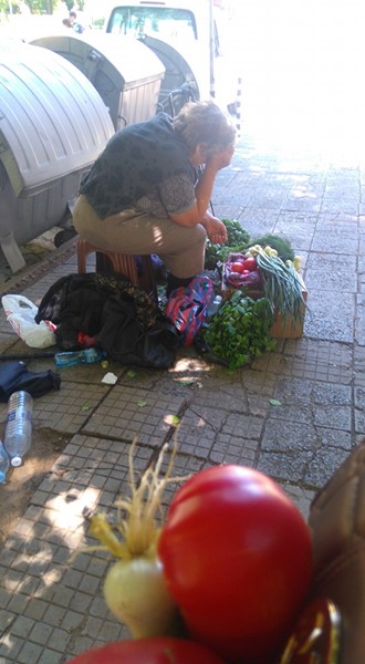 Днес минавайки покрай тази баба й се усмихнах, а тя в отговор ме попита с надежда в гласа дали ще си купя нещичко. Разбира се. Купих си 2 домата и лук, дадох й 10 лв и не поисках ресто.