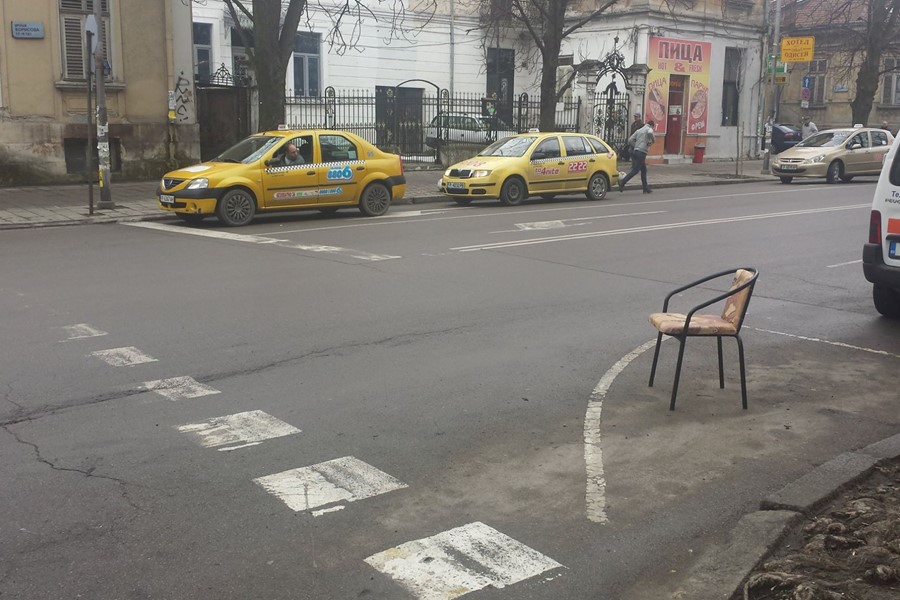 Това не е нещо необичайно за нашия град. Виждали сме и доста по-атрактивни начини за запазване на места. Някои слагат бутилки, камъни, касетки от бира и всякакви други вещи, с които да сигнализират, че свободното място, всъщност е вече заето".
