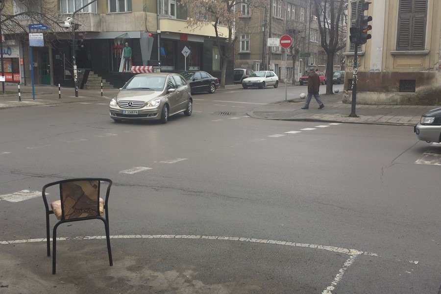 Стол пази паркомясто на кръстовище по ул. "Борисова"