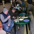 Идеята на зевзеците, които явно живеят в района, е хем ще се видят с приятели, хем да послушат малко чалга без пари – също като в кръчмата. И докато едни мръзнеха на крак, находчивата групичка е изкарала няколко масички на затворената част от възловия булевард, салатка и ракийка и ... Позира за наздраве.