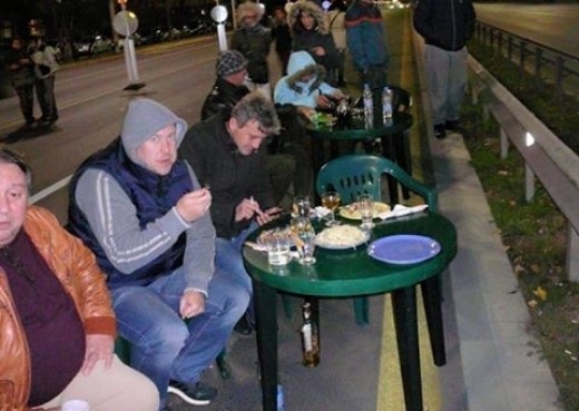 Снимки от хубавата им съботна вечер предизвикаха истински фурор в социалната мрежа. Малка компания измисли много нетрадиционен начин да се забавлява в студената съботна вечер и разпъна софрата на затворения заради събитието булевард „Цариградско шосе”.