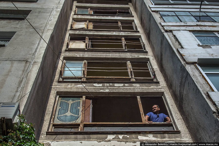 Типична циганска панелка. Квартирите на бедняците са без прозорци, но с пердета. Има и такива, които не плюят върху себе си – имат стъкла на прозорците, даже са си боядисали външните стени. Но общите пространства са с изпочупени прозорци и изгорени стълбищни пространства. Такова е отношението – общото не означава нищо.