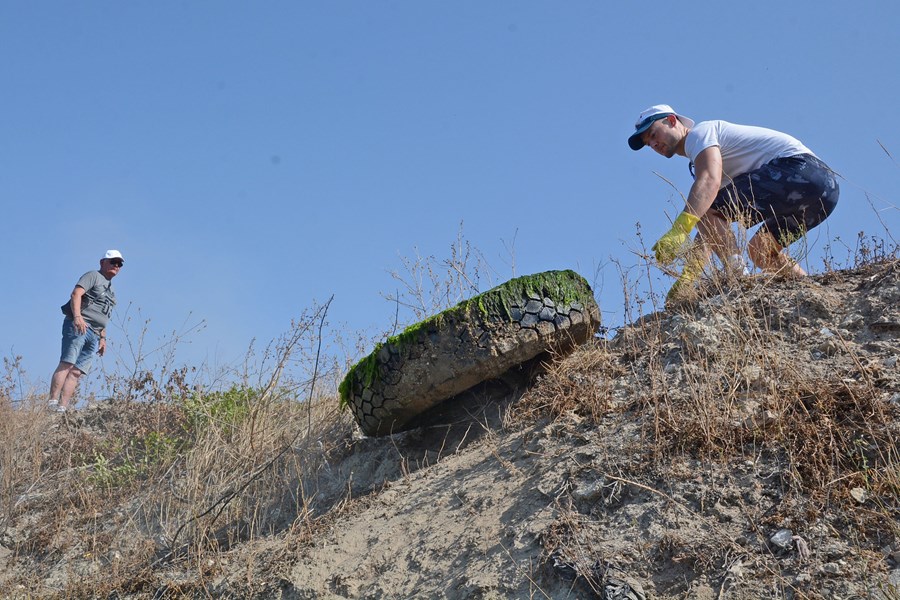 Стотици излезли от употреба автомобилни гуми, кубици пластмасови и текстилни отпадъци бяха почистени от брега и плитката част на северния бряг на Варненското езеро при мащабната акция, проведена днес по инициатива на Община Варна. В нея се включиха тежка техника и служители на общинската администрация.