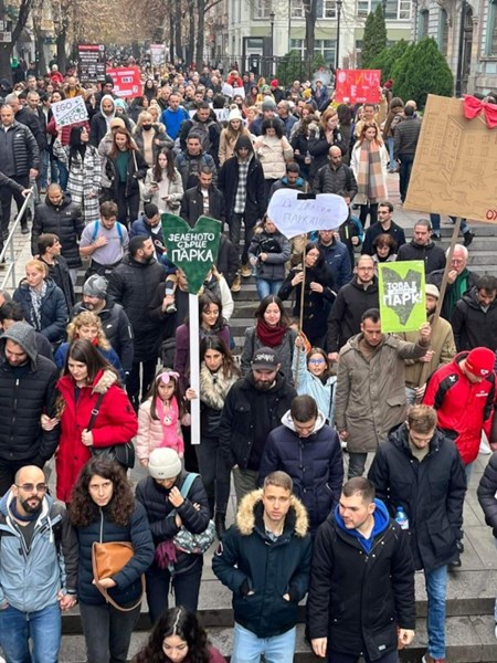Застрояването на парка е поредната кауза, която обединява пловдивчани срещу местната власт, но днешният протест надмина всичко, виждано напоследък. Още преди уречения час - 14:00 ч., пред община Пловдив много хора чакаха на опашка да се подпишат срещу застрояването на парка (подписка има и в сайта peticiq.com. Дългото шествие мина по Главната, блокира за кратко движението (под одобрителните клаксони на шофьорите), игра хоро на пл. "Съединение" и би следвало най-сетне да трогне управленците на ГЕРБ, които досега се правеха, че навън протестират "шепа лумпени".
