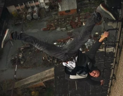19-годишният възпитаник на Спортното училище този път се провеси с главата надолу от 20 метра височина, държейки се за външната страна на аварийната стълба на промишлена сграда. Въпреки смразяващата кръвта гледка, младежът се усмихва, все едно върши нещо обичайно, съобщава Burgasinfo.