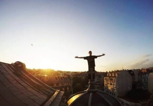 А Стоян не е пропуснал възможността да се покатери на едно от централните кубета и да разпери ръце пред кръста на фона на залеза. Въпреки че каскадите на Стоян са впечатляващи и за тях се иска сериозна физическа подготовка, координация и опит, номерата му остават опасни. Феновете му пък се молят късметът да не го оставя.