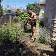 Секссимволът от тийн сериала спаси зарзавата от юнските жеги, поливайки градината с маркуч.