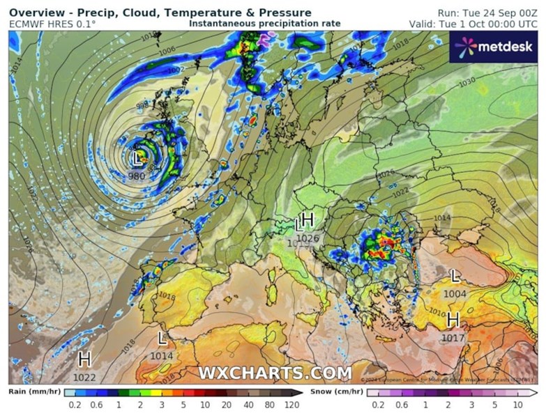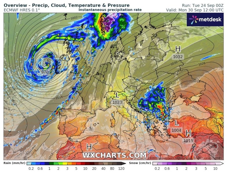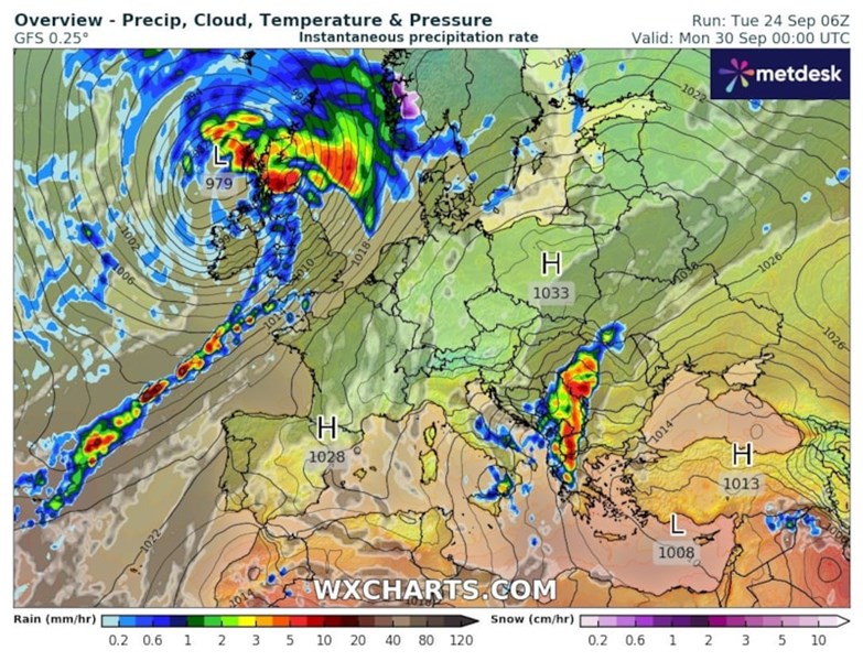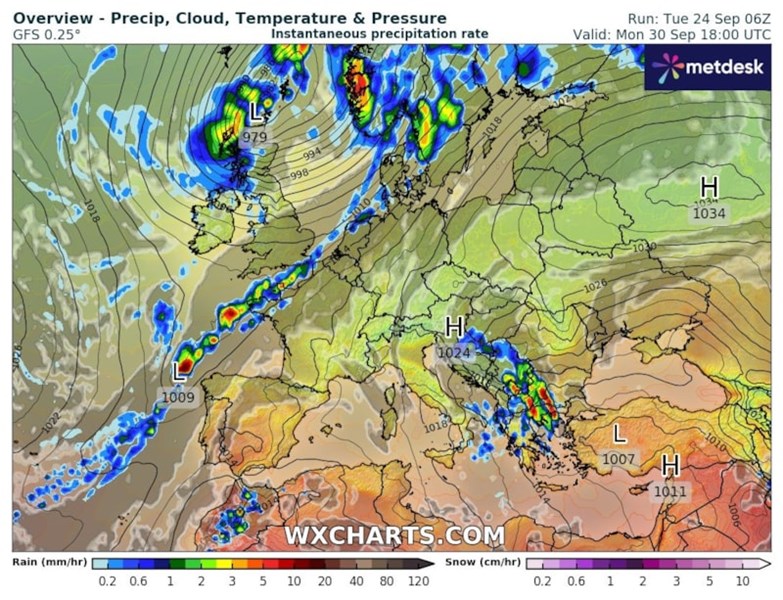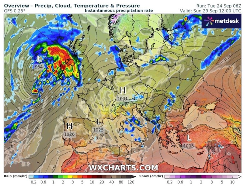 Синоптичната обстановка в края на септември се очертава динамична, с прогнози за обилни валежи и рязка промяна на температурите в страната. Метеорологичните модели предвиждат преминаването на студен атмосферен фронт над Балканския полуостров и България на 29 и 30 септември, което може да доведе до значителни валежи и риск от наводнения в определени региони.