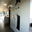Обзавеждането е модулно, което означава, че може да се премества и съхранява на друго място. Голямото двойно легло може да се превърне в зона за сядане или вечеря, а повечето мебели имат и пространство, където можете да съберете вещите си. Кухнята разполага с мивка, хладилник, фурна с котлони,които работят на газ. Малката подвижна баня се намира най-отзад н автобуса.