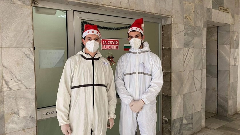 Младежите избраха да посрещнат Коледа не при близките си, а на смени в лечебното заведение, за да помагат на хората в нужда. Мария, Димитър, Николай, Симона и Атанас влязоха преди месец на помощ като доброволци в свищовската болница, която изпадна в тежка криза, заради липса на медицински персонал. След влизането на студентите в ковид отделенията медицинският персонал беше значително облекчен, а пациентите обгрижвани денонощно. Студентите казват, че в последната седмица болните чувствително са намалели. Въпреки че са в най-тежкото отделение на болницата, сред студентите не липсваше коледно настроение. Заедно с медицинския персонал младите хора раздадоха баница с късмети, а към предпазните облекла добавиха и коледни шапки.