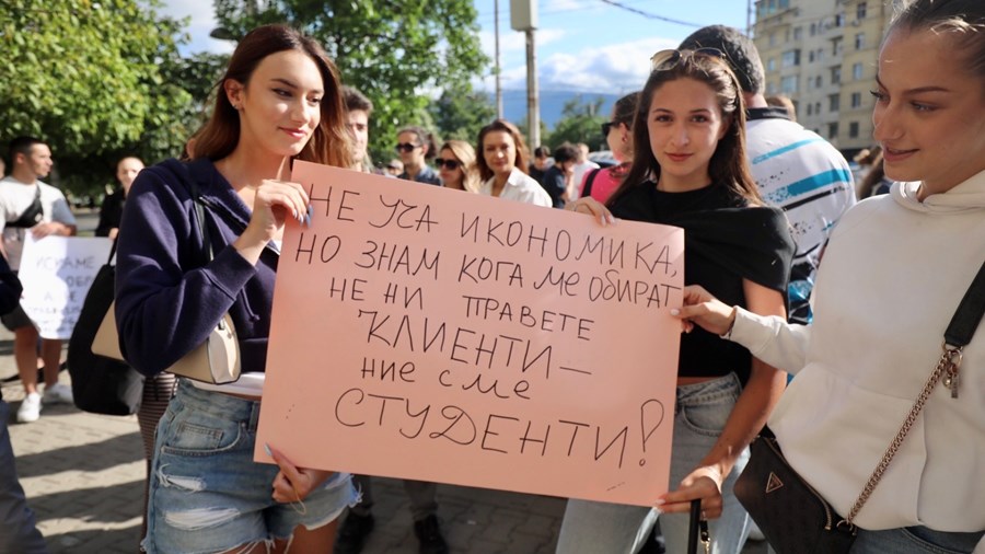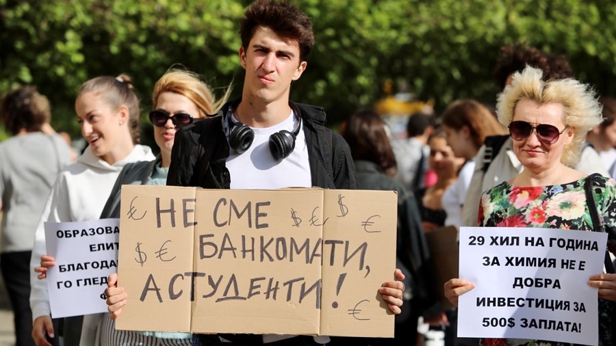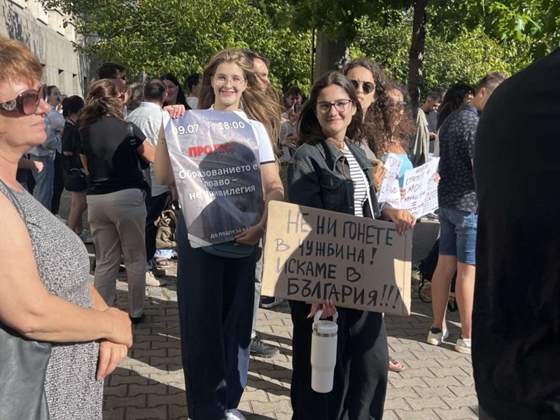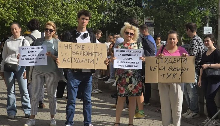 "Не приемаме реалността, в която от есента много от нашите колеги няма да могат да прекрачат прага на университета, защото не могат да си позволят двойно по-висока такса", заявиха протестиращите студенти, предаде БНТ.