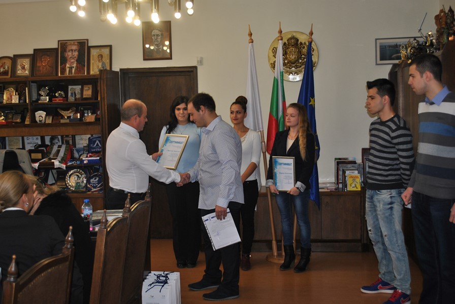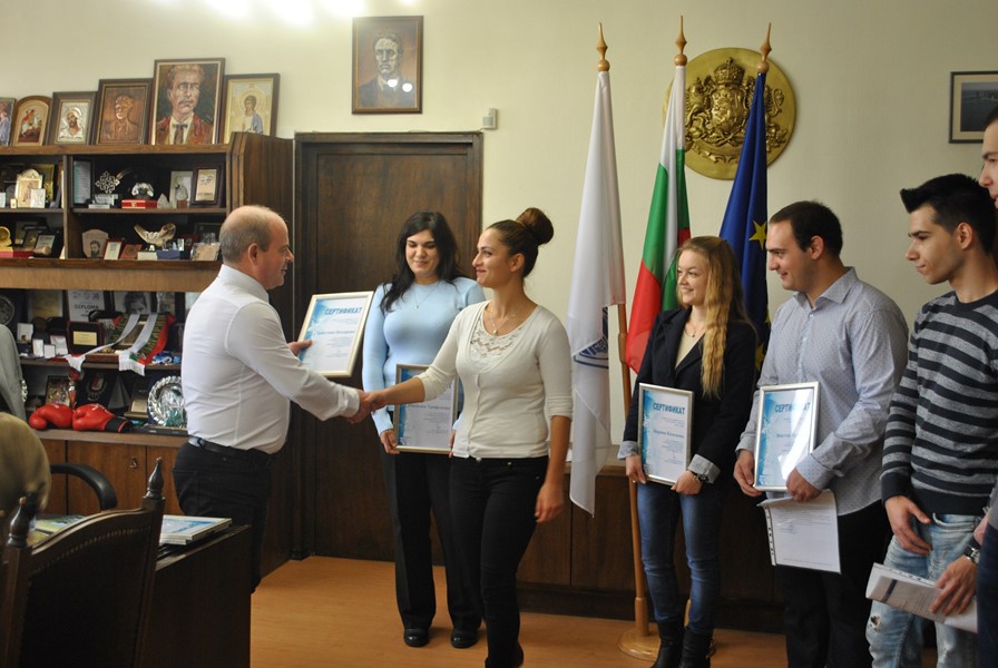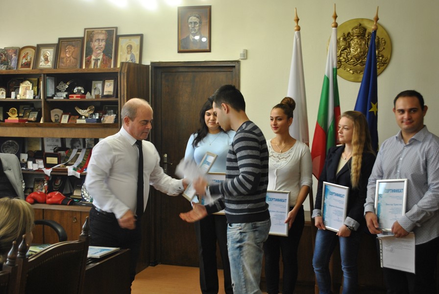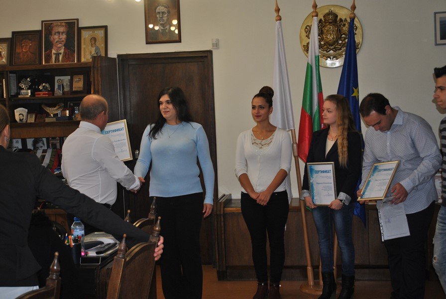 Всички те изучават „Публична администрация“ в различни курсове към Русенски университет „Ангел Кънчев“. Стажът им е бил в период от един до два месеца в дирекция „Европейско развитие“. Ресорният им ръководител – зам.-кметът по европейско развитие д-р Страхил Карапчански ги поздрави за активната дейност в администрацията, където студентите имаха възможност да усетят реалната работна среда по специалността си. Г-н Стоилов връчи сертификат на всеки от тях и им пожела успех в бъдещите начинания. „Радвам се, че връчването на сертификатите се случва в присъствието на заместник-кметове, директори на дирекции и други ръководители в Общината. Пред тях мога да ви похваля за добре свършената работа“, добави той и им пожела нови успехи.