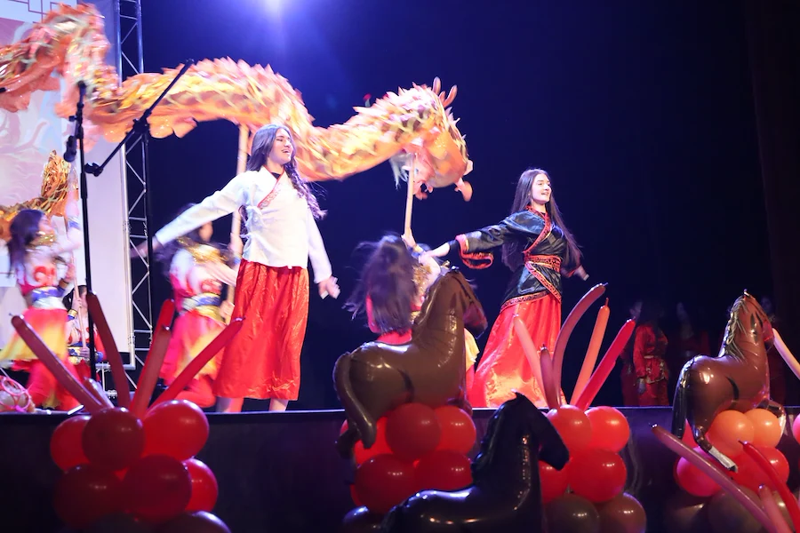 Същинската част на празника беше поверена на учениците. Програмата включваше демонстрации на бойни изкуства, традиционни танци с ветрила и задължителния за празника "Танц на дракона", който според поверието гони злите сили.