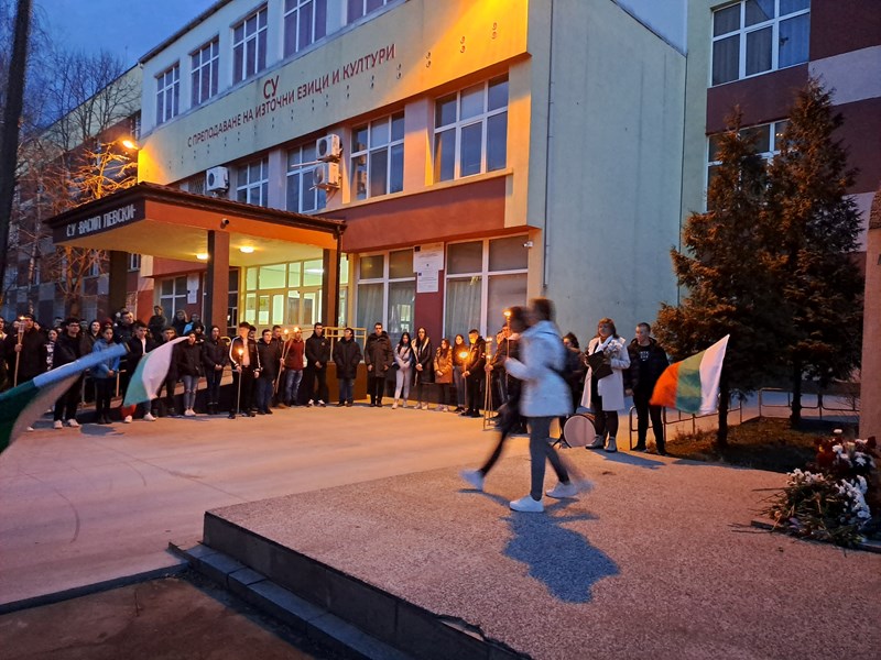 Ръководството на училището, учители, ученици от всеки клас и гости почетоха паметта на Апостола, поднасяйки цветя пред паметника на Васил Левски.
