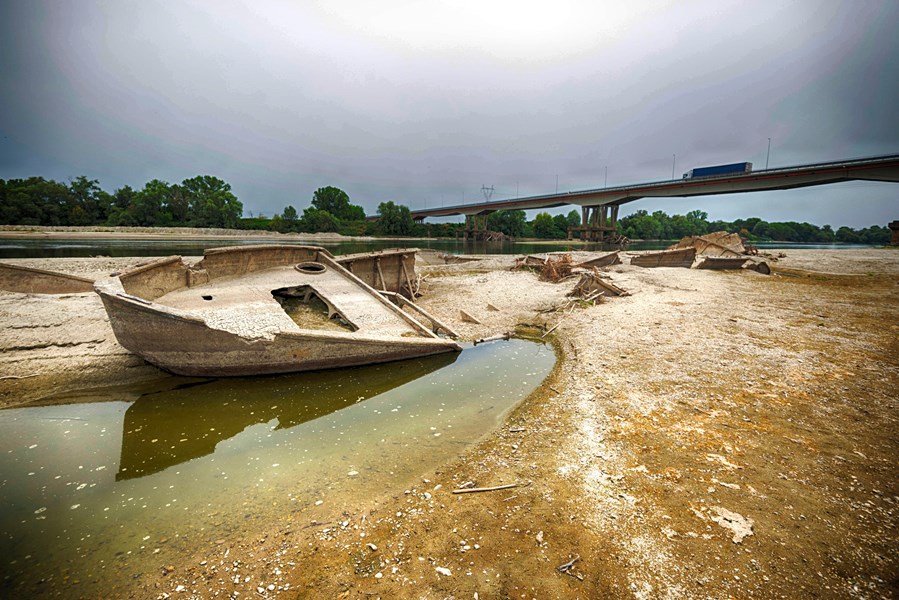 Нивото на най-дългата река в Италия - По, чиято делта е близо до Венеция, е най-ниско от 70 години насам в някои части от течението ѝ. Солена вода е навлязла на километри нагоре по течението.