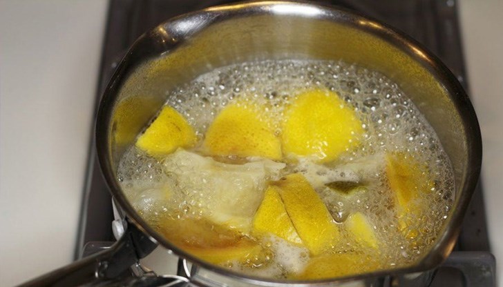 След това изсипете 2 литра вода в тенджера заедно с лимоните. Когато водата достигне точка на кипене, добавете сместа и гответе няколко минути. Накрая извадете лимоните и оставете да изстинат и ги поставете в съд с капак.