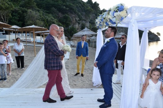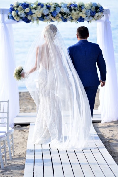 Антония и Ивайло станаха законни съпрузи с приказна сватбена церемония на един от най-красивите плажове в южната ни съседка Гърция. Пред точно 50 човека – близки и роднини, двойката даде официален старт на своя семеен живот.