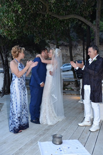 Това време обаче се оказва достатъчно, за да ги убеди, че са родени един за друг. Любовта им пламва спонтанно и от пръв поглед още при запознанството им на 17 март тази година. Като по филмите. Спонтанно се случва и предложението за сватба, с което младоженците отбелязват и своите три месеца познанство. Инициативата за него била на Ивайло. А в поканите си щастливите влюбени написали: „Да отпразнуваме три месеца от запознанството си с малка плажна луда гръцка сватба”. Така и станало. Сватбата продължила цели три дни – от залез до изгрев.