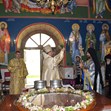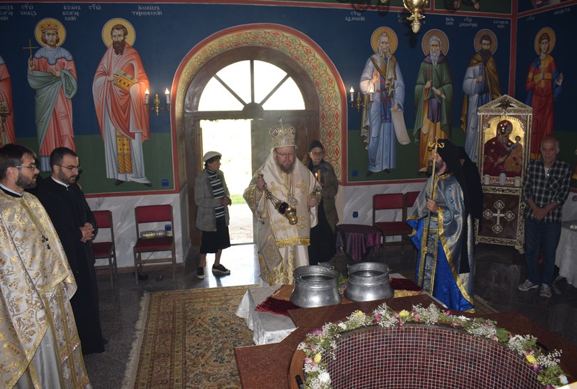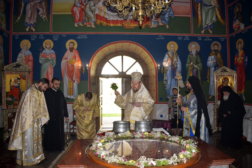 На архиерея съслужиха: йером. Филарет, игумен на манастира, прот. Светослав Георгиев от Русе и дякон Росен Георгиев, а песнопенията на клира се изпълняваха от дякон Орлин Янчев. В края на богослужението Негово Високопреосвещенство отслужи водосвет при аязмото, поръсвайки за здраве присъстващите духовници и богомолци, пожелавайки им Бог да ги закриля в мир, здраве и добротворство.