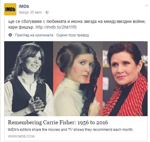 Светът скърби за загубата на своята принцеса. Социални мрежи преляха от сбогувания, снимки, постове. "Нека силата бъде с теб, принцесо", сбогуват се фенове.