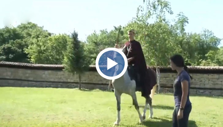 Младият Борис, ученик по конен спорт, влезе в ролята на светеца, яздейки кон в двора на църквата.