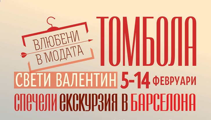 Февруари, месецът на любовта и страстите, тази година преминава под мотото „Влюбени в модата“ за всички посетители на Mall Rousse. По случай Свети Валентин, търговският център подготвя специална томбола за всички посетители, пазарували на минимална стойност 50 лева на един касов бон в периода 05 – 14 февруари 2016 г. Двойка щастливци ще получат самолетни билети и романтичен уикенд в една от световните модни столици, Барселона, където ще имат възможността да се потопят в атмосферата на горещи танци, пикантни храни и ароматни вина, на фона на спиращи дъха гледки и уникална архитектура.