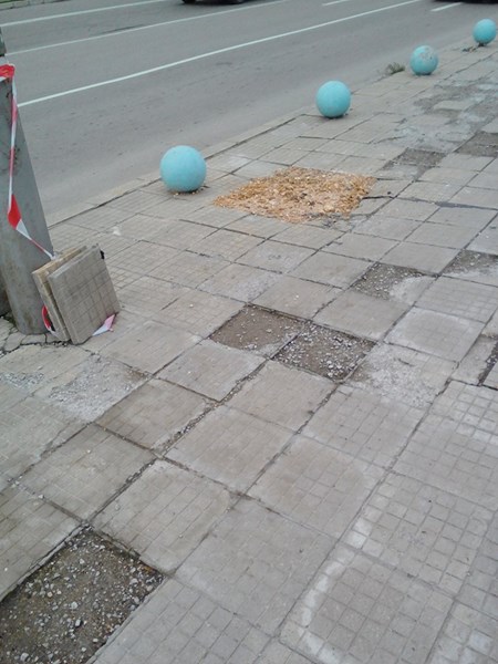 Но така само с пълнеж от камъчки ли бъде, не е ясно на този етап. Видно всички плочки са взели да се "разтапят" от качеството на материала или заниженият контрол от страна на Общината?!