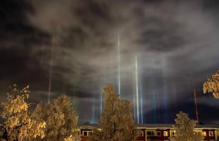 Необичайно атмосферно явление привлече погледите на жителите в различни части на Швеция, включително столицата Стокхолм. Впечатляващи светлинни стълбове се издигнаха във въздуха, създавайки зрелищна гледка в зимното небе.