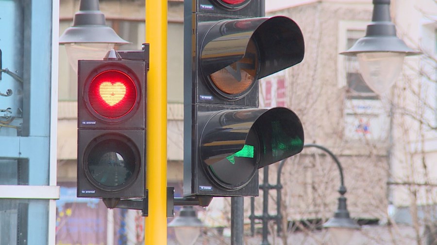 Светофари в София осъмнаха със сърца