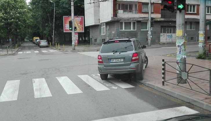 През изминалите 4 години сме публикували огромно количество снимки на шофьори, които се спрели като каруцари. За първи път обаче имаме такъв, който е спрял на натоварено кръстовище, на тротоара, върху пешеходната пътека и не на последно място-точно на светофара. На това в спорта се казва Голям шлем!