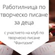 Каним родители и деца при нас още в 11 ч., когато ще започнем деня с работилница по творческо писане за деца в ученическа възраст, в която специални гости ще бъдат младите и талантливи деца от Клуб по творческо писане "Фантазия" към Фондация "Бистра и Галина". Необходими са ви само творческо настроение и химикал.