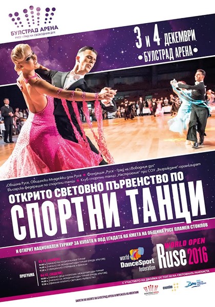 Залата ни има честта да приеме Откритото световно първенство по спортни танци и Открития национален турнир за купата, под егидата на кмета на Община Русе Пламен Стоилов, информираха организаторите на събитието.
