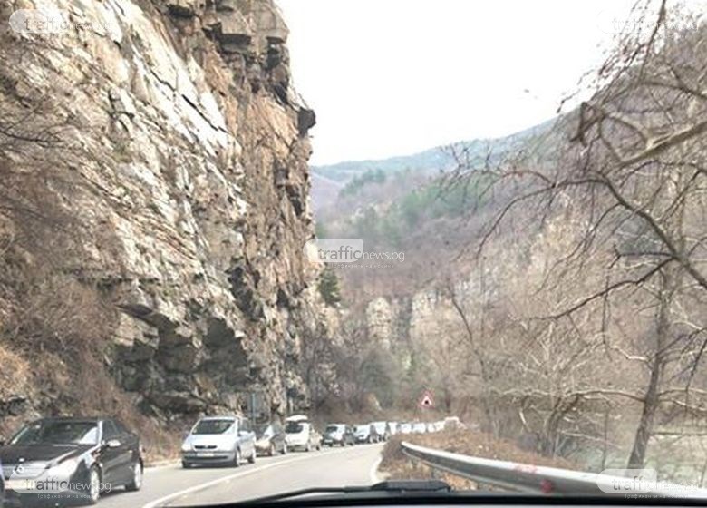Повече от 50 автомобила чакат трасето да бъде разчистено.