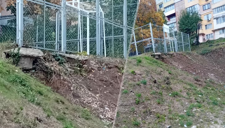 Свлачище застрашава спортното игрище в квартал "Дружба 3" в Русе, в района на блок 18. Проблемът е сигнализиран от жителка на квартала в официалната Facebook страница на Община Русе.
