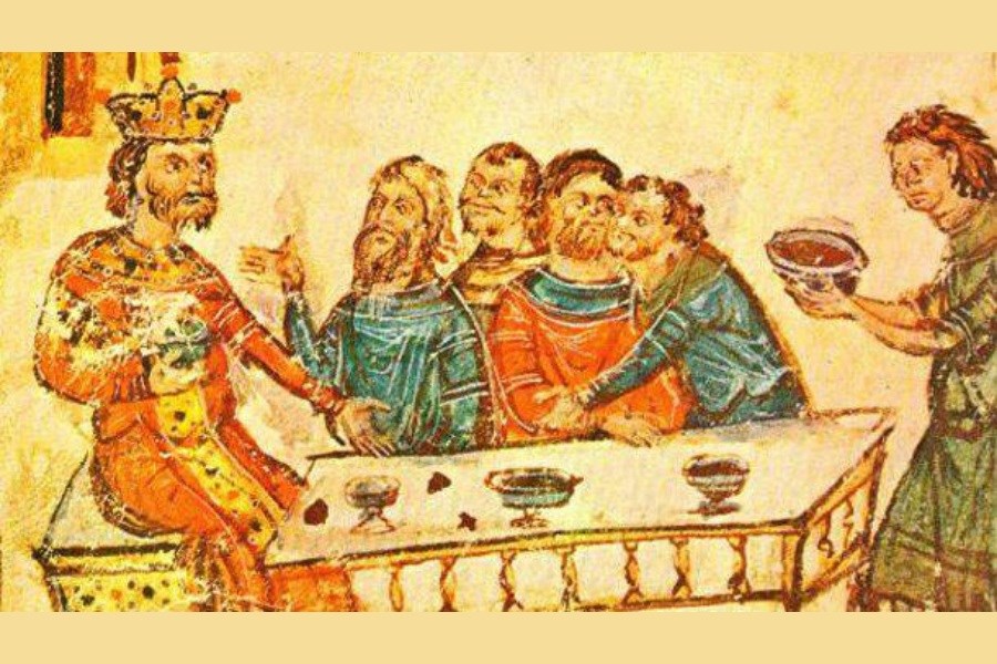 Илюстрация от Ватиканския препис на Манасиевата летопис представя сцена на българския владетел Крум, който държи чаша, направена от черепа на византийския император Никифор. Превод на Световната история на гръцкия писател Константин Манасий, е направен по заповед на цар Иван Александър през XIV век. С българската история са свързани 19 добавки. Ватиканският е един от 5-те запазени преписа.