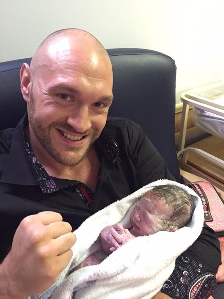 Щастливият Фюри цял ден пускаше в мрежата снимки от болницата със съпругата си и бебето, а за финал пусна кадър от кръчма, където отиде да полее събитието.