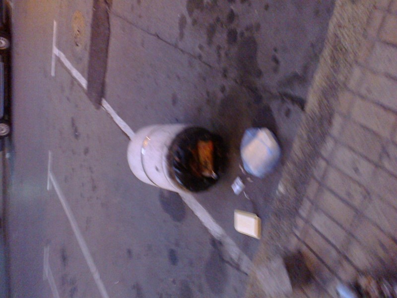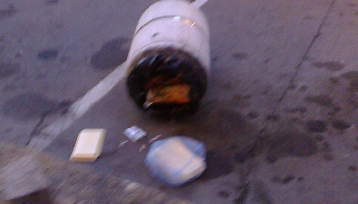 Така изглежда "Градът на свободния дух" - всички кошчета по ул.""П. Д."Петков са съборени. По-надолу пред "Катмите" - фасове, тарелки от сандвичи, чаши, бутилки, повръщано.