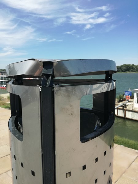 Така изглеждат новите кошчета на кея след първия по-силен вятър!