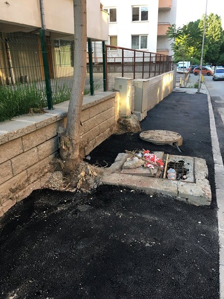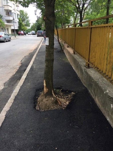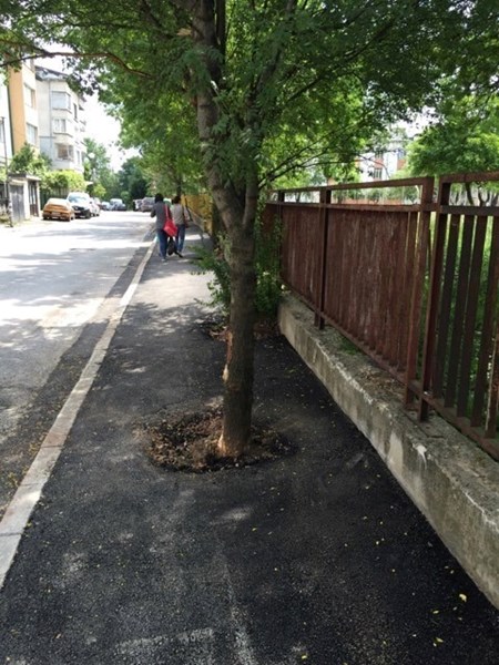 По този начин изглеждат току-що ремонтирани тротоари на ул. "Яна" и ул. "Проф. Стоян Киркович" в кв. Дървеница, в европейска София, която, по думите на кмета, уж щеше да кандидатства за титлата Европейска зелена столица.