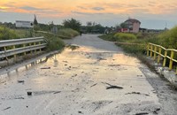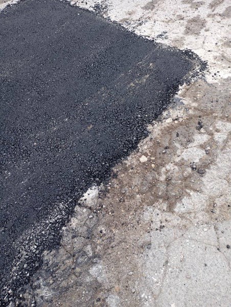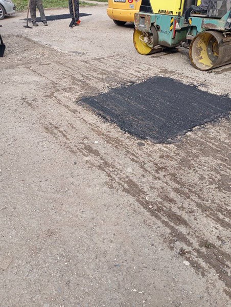 На кадрите ясно се вижда нискокачествен асфалт, примесен с пясък и чакъл, положен в опит да обезопаси пространството за пешеходци и автомобили. Според автора на публикацията, резултатът е плачевен.